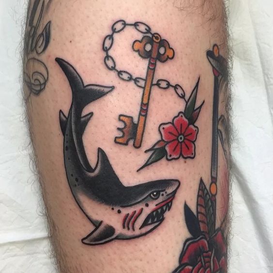 In conclusion, traditional shark tattoos are more than just ink on skin. They are a celebration of the shark’s power and the ocean’s mystery. Whether you prefer intricate patterns, bold lines, or abstract art, these tattoos offer a deep connection to maritime traditions and stories. They’re a perfect choice for anyone seeking a tattoo with rich history and strong symbolism.