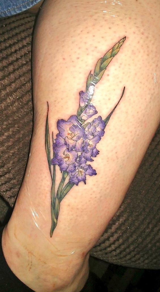 Realistic gladiolus tattoos are a testament to artistic skill. Indeed, they look almost lifelike, capturing every detail of the flower. These tattoos are ideal for those who appreciate precision and realism in tattoo art.
