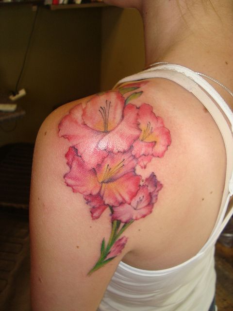 Watercolor gladiolus tattoos are a popular choice for their artistic flair. Similarly, they mimic the fluidity of watercolors, creating a dreamy, ethereal effect. This style is perfect for those who appreciate art and want a tattoo that looks like a painting.