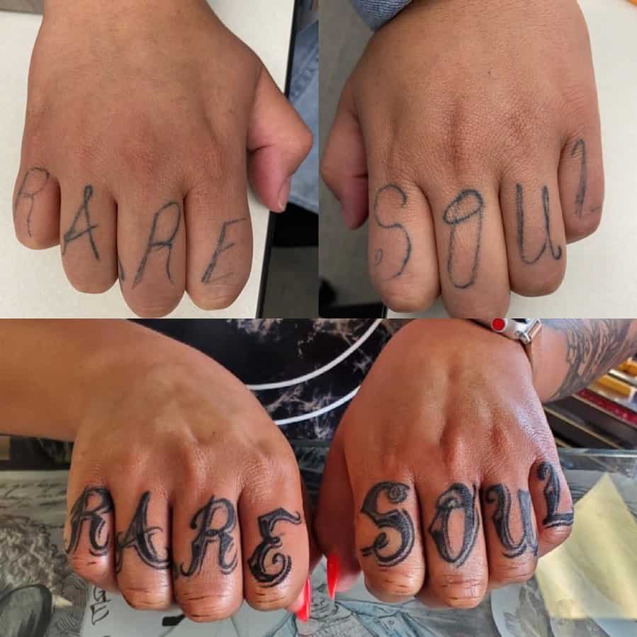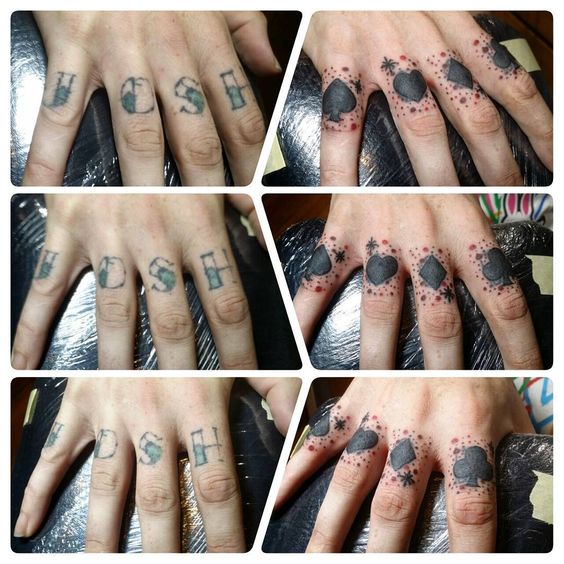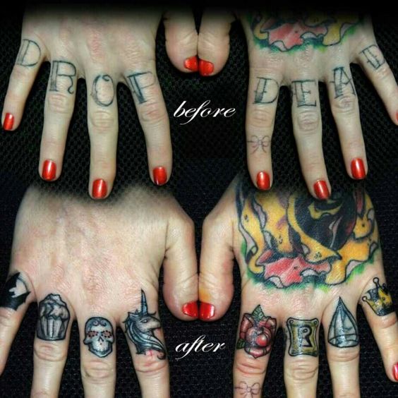 Calligraphy or script tattoos can transform a finger tattoo into a meaningful word or phrase. This approach can turn an unwanted design into a powerful message or mantra.
