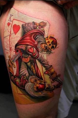 King of hearts tattoos are versatile. They can be intricate or simple, colorful or monochrome. The choice is yours. These tattoos are a favorite among those who love playing cards or enjoy the symbolism of the heart. They can represent love, passion, or even a gambler’s spirit.