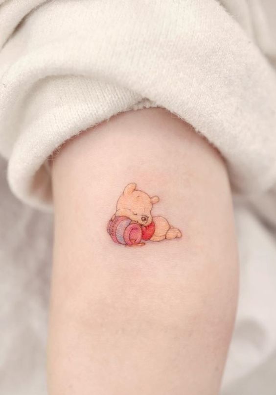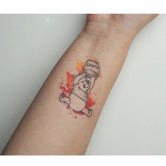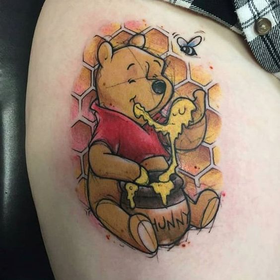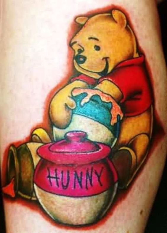 The tattoo resonates with people of all ages. It’s not just for those who grew up reading Winnie the Pooh stories. Even younger generations find the design appealing. It’s a universal symbol of joy, love, and the simple pleasures in life. In conclusion, a Winnie the Pooh with a honey pot tattoo is a timeless choice. It’s a design that brings a smile to your face and warmth to your heart. So, why not take the plunge and get this delightful tattoo?