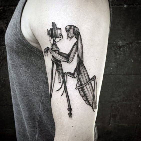 An abstract design plays with form and space, turning the praying mantis into a piece of living art. Meanwhile, a Japanese-inspired tattoo combines the mantis with traditional Eastern motifs, resulting in a design rich in cultural significance. Lastly, a photorealistic black and grey tattoo captures the essence of the praying mantis in stunning detail, a true masterpiece of tattoo art.