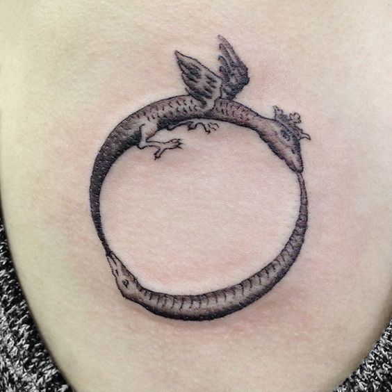 Consider a tiny ouroboros tattoo on the wrist for subtlety and charm. Its small size makes it both discreet and enchanting, ideal for a first tattoo or a minimalistic addition. Moreover, it symbolizes life’s continuous cycle in a dainty way.