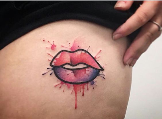 Think about vibrant colors. A fiery red or deep purple lip tattoo is an eye-catcher. The brighter, the better! These shades bring the tattoo to life, ensuring you’ll be the center of attention. Now, imagine a smudged effect. A design that looks like someone kissed you moments ago adds an element of immediacy. It’s sensuous, yet playful, perfect for romantics.