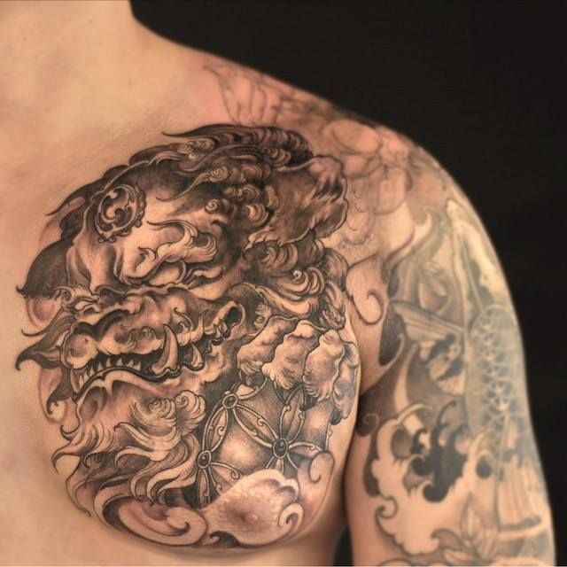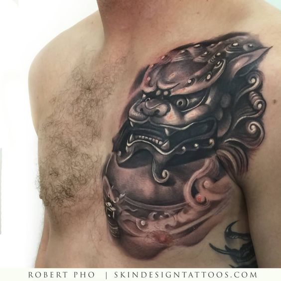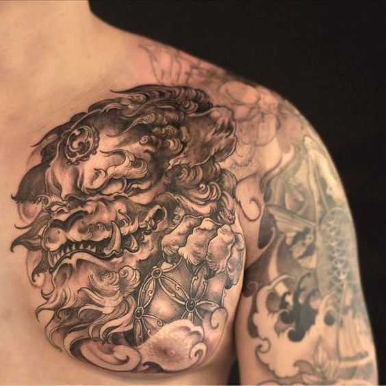 Design options are incredibly diverse. You can opt for a ferocious Foo Dog with bared teeth or a more serene, guardian-like figure. These tattoos are perfect for those who appreciate the blend of artistry and symbolism. Moreover, the chest provides ample space for intricate details, making each tattoo a masterpiece.