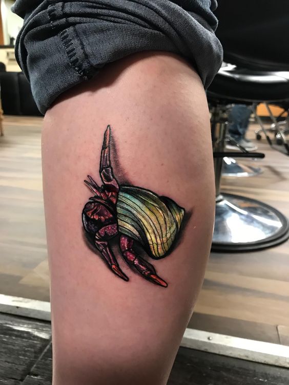 Moreover, these tattoos offer a unique blend of natural beauty and meaningful symbolism. The hermit crab, often overlooked, is a creature of resilience. It finds new shells as it grows, symbolizing adaptability and growth. Likewise, the tattoo can represent your own journey and transformations.