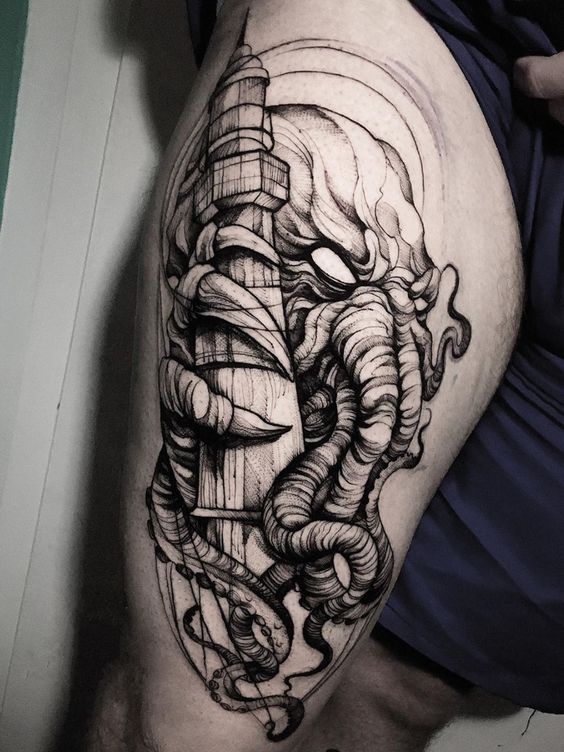 Furthermore, these tattoos often incorporate other Lovecraftian elements, creating a tapestry of horror and intrigue. The inclusion of ancient symbols or eerie landscapes adds depth to the Cthulhu theme. As a result, these elements create a narrative, a story told on the skin.