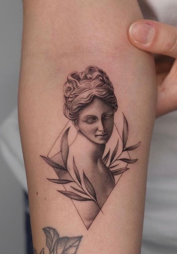 A modern interpretation uses abstract lines to depict Aphrodite’s form. It’s a minimalist take on the goddess, appealing to those who love contemporary art. Another design integrates traditional Greek motifs, linking the tattoo to historical art.