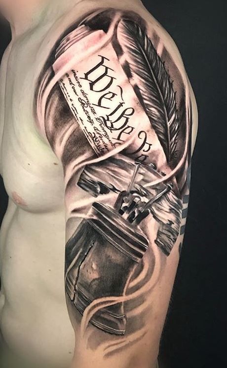 Also, there’s an arm piece where ‘We the People’ is the mast of a ship, navigating through stormy skin art waves. Furthermore, in another, the words are part of a soldier’s silhouette, a literal backbone of their service. Impressively, a sixth tattoo is an entire back piece, the Constitution’s words arching over an American landscape.