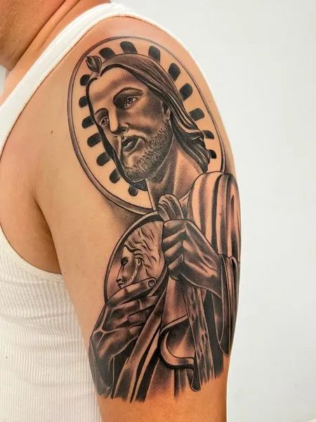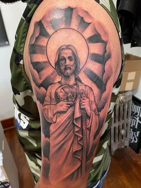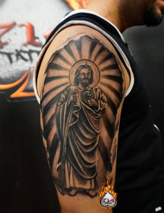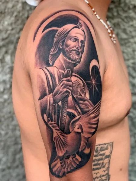 In conclusion, San Judas arm tattoo come in a variety of styles, each carrying a unique blend of artistic expression and personal meaning. From classic renditions to modern interpretations, these tattoos offer a profound way to honor one’s faith and beliefs.