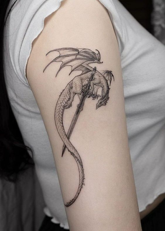 In conclusion, sword dragon tattoos are impressive due to their powerful symbolism, artistic versatility, and deep cultural roots. They offer a unique way to express one’s personality, values, and journey. These tattoos are more than just body art; they’re a blend of personal narrative, artistic expression, and ancient symbolism, making them a captivating choice for anyone seeking meaningful and striking tattoos.