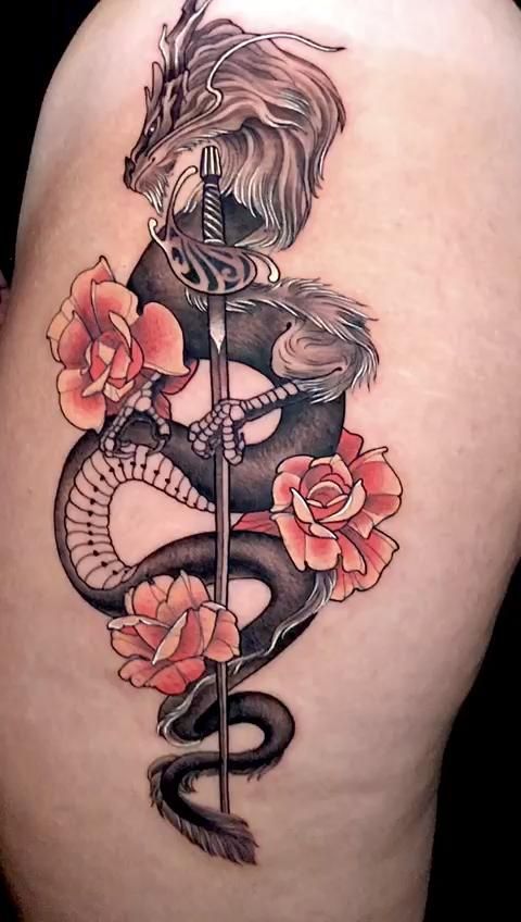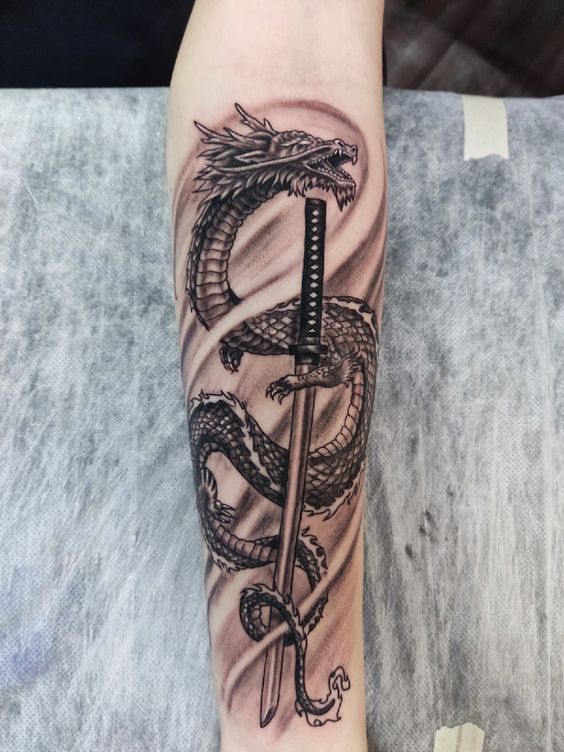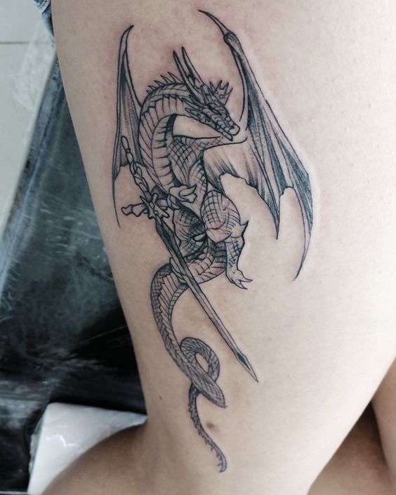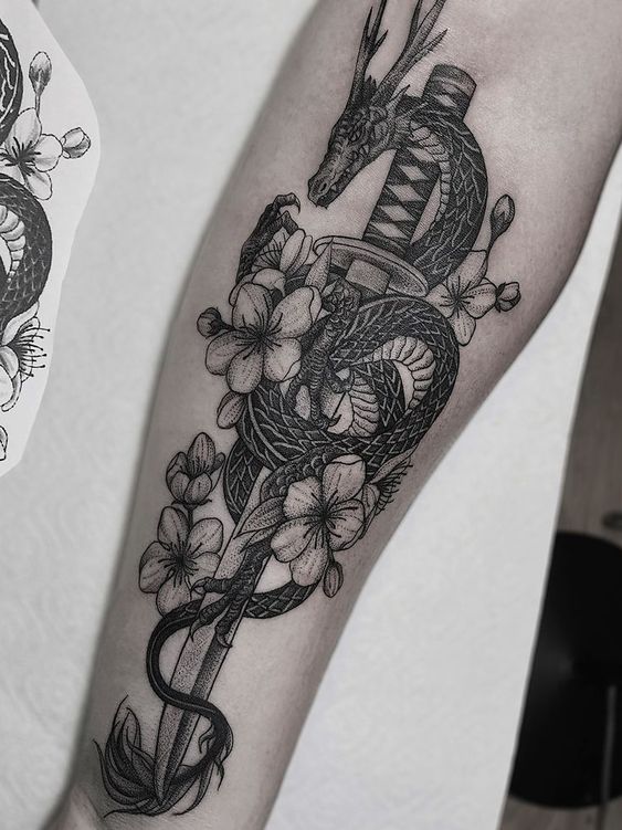 Sword dragon tattoos blend two powerful symbols into stunning body art. They represent strength, wisdom, and the spirit of a warrior. Additionally, their dynamic nature makes them visually captivating and deeply symbolic.