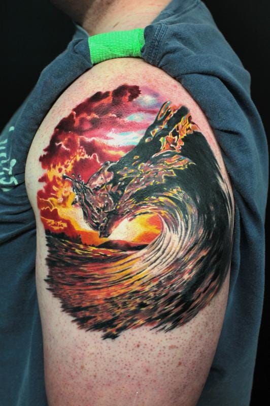Moreover, wave tattoos often symbolize a love for surfing or the ocean. For surfers and sea lovers, it’s a permanent tribute to their passion. It connects them to the vast, unpredictable nature of the waters they adore, serving as a constant reminder of where their heart lies.