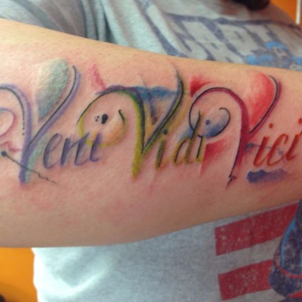 Moreover, a forearm Veni vidi vici tattoo serves as a constant reminder of your strength and achievements. Every time you see it, you’re reminded of your capacity to overcome challenges. It’s a personal motivator, right there on your arm.