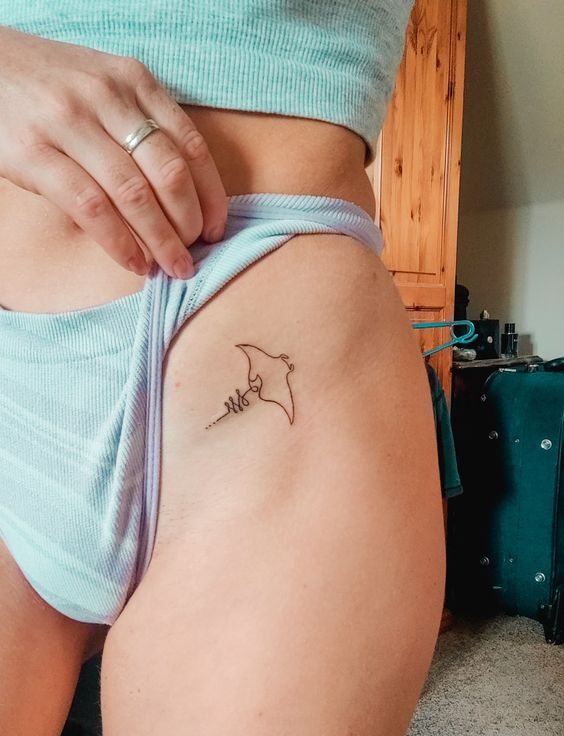 Firstly, imagine a single line manta ray tattoo. It’s sleek, it’s chic, and it flows like water. Moreover, consider a small silhouette of a manta on your wrist. It’s discreet yet speaks volumes about your love for the ocean. Additionally, a manta ray with a splash of watercolor can be stunning. It combines simplicity with a dash of whimsy.
