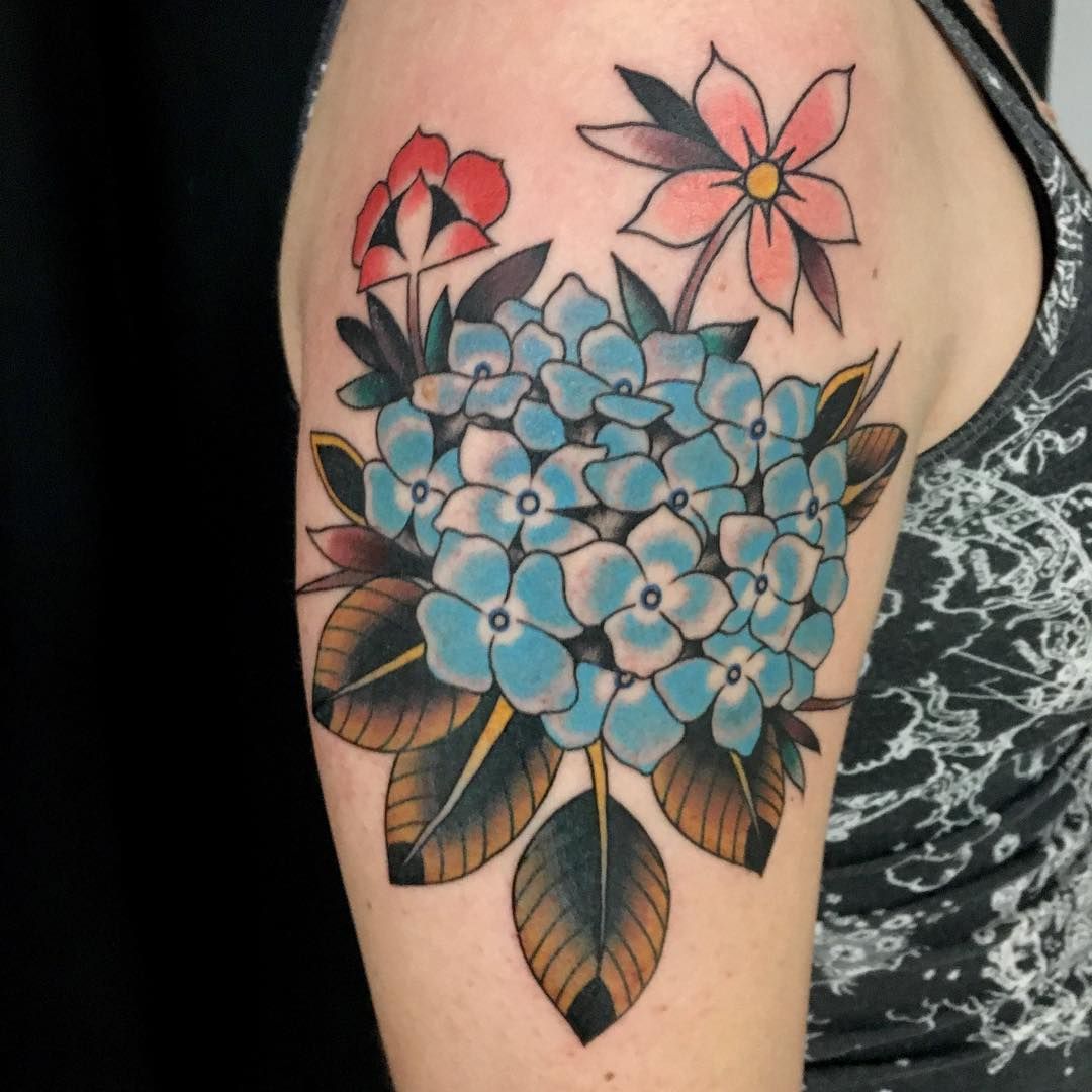In summary, traditional hydrangea tattoos offer a unique blend of vintage charm and modern versatility. They’re a beautiful way to celebrate nature’s charm while making a subtle yet impactful statement. If you’re looking for a tattoo that combines history, art, and personal meaning, a traditional hydrangea tattoo might just be the perfect fit for you.