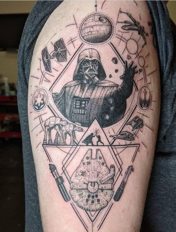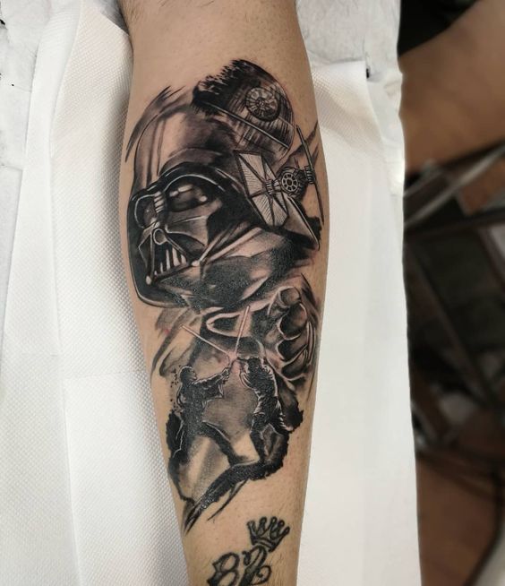 Fans of minimalism might prefer a small, simple design. A tiny Vader helmet or a lightsaber can be subtle yet meaningful. These small tattoos can be placed anywhere, making them versatile and personal.