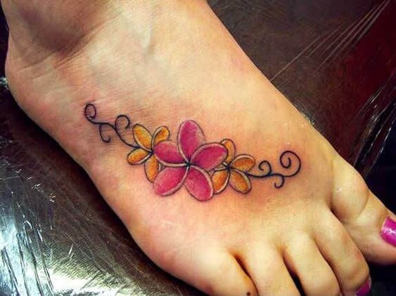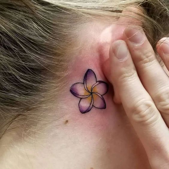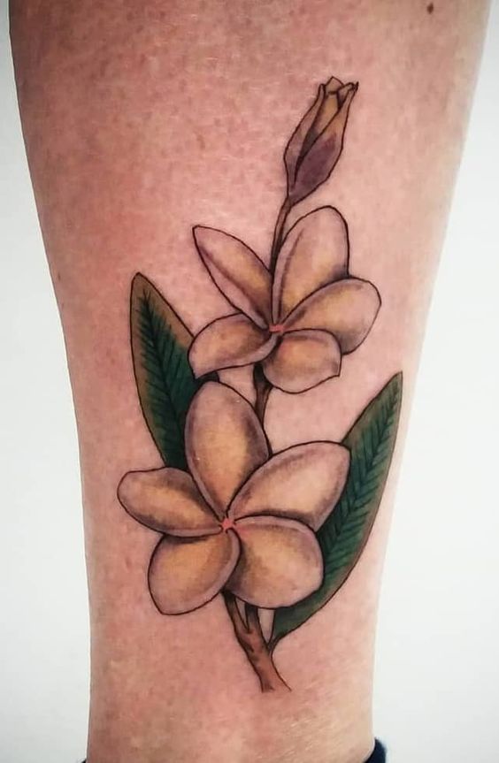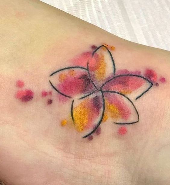 Envision a tiny Plumeria behind the ear, a subtle yet enchanting choice. Indeed, it’s great for anyone who prefers a more hidden tattoo. Also, a Plumeria foot tattoo could be another graceful option, symbolizing a path of beauty.