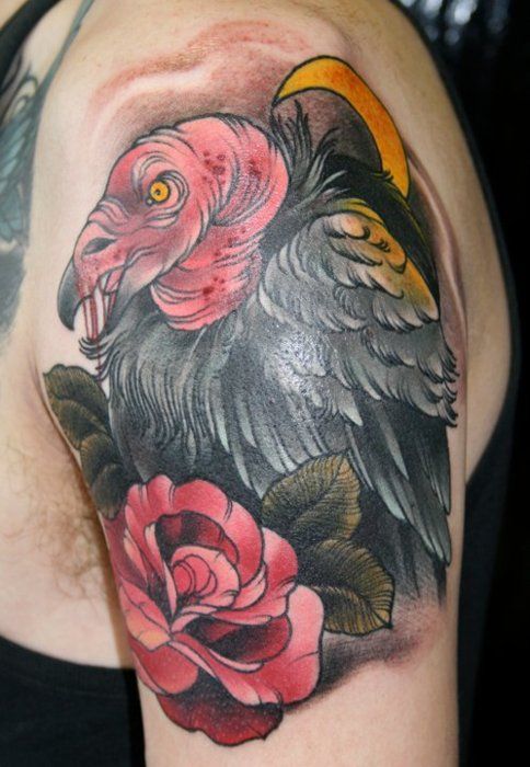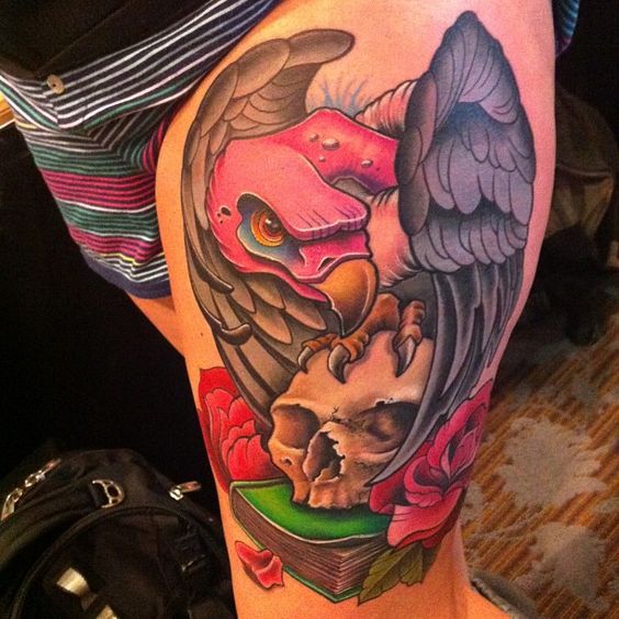 A tribal vulture tattoo merges ancient symbolism with modern aesthetics. A realistic vulture head tattoo displays the bird’s striking features up close. A colorful, abstract vulture tattoo breaks traditional boundaries, bursting with creativity. A small, discreet vulture tattoo, ideal for first-timers, speaks volumes in its simplicity.