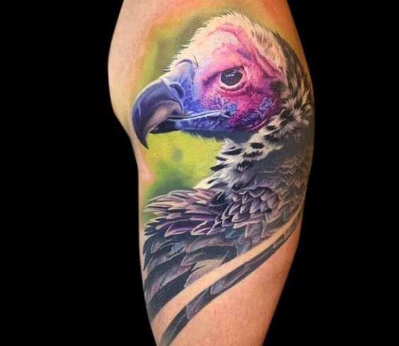 A watercolor vulture tattoo flows with vibrant hues, a visual feast. A vulture tattoo with a quote incorporates personal beliefs or inspirations. Lastly, a duo of vultures in a tattoo represents partnership and solidarity, a meaningful choice for many.