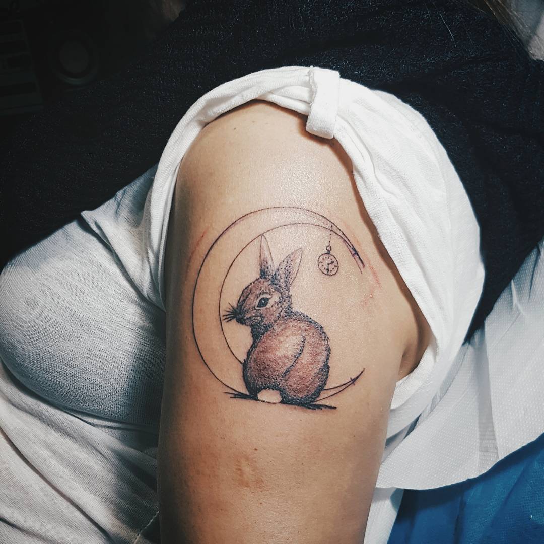 Furthermore, they resonate with those who cherish childhood tales. A small bunny looking up at the moon can symbolize innocence. Conversely, a rabbit etched with celestial patterns can reflect a deeper, mystical journey. Thus, the tattoo can be a personal emblem, a beacon of one’s dreams and wonder.
