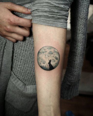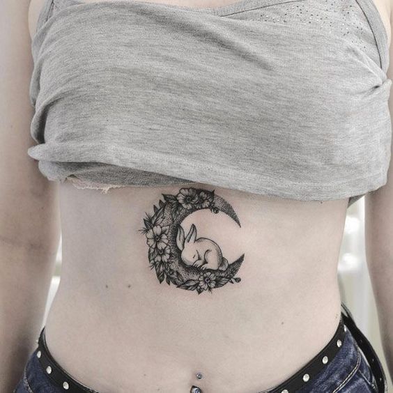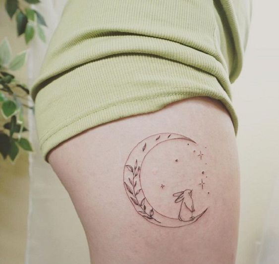 Additionally, bunny moon tattoos are rich in contrast. Black ink can define the delicate silhouette of a rabbit against a full moon. Or, soft grays can mimic the moon’s gentle glow, cradling the bunny in its light. Hence, the designs can be as vivid or as subtle as the story they’re telling.