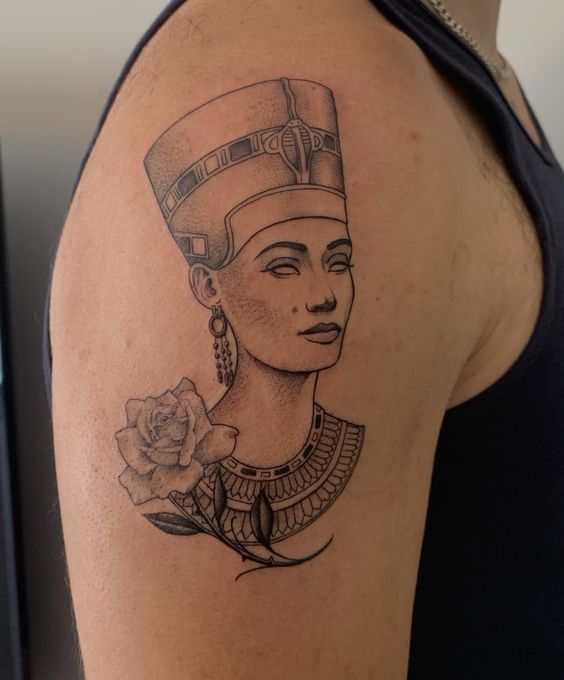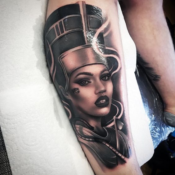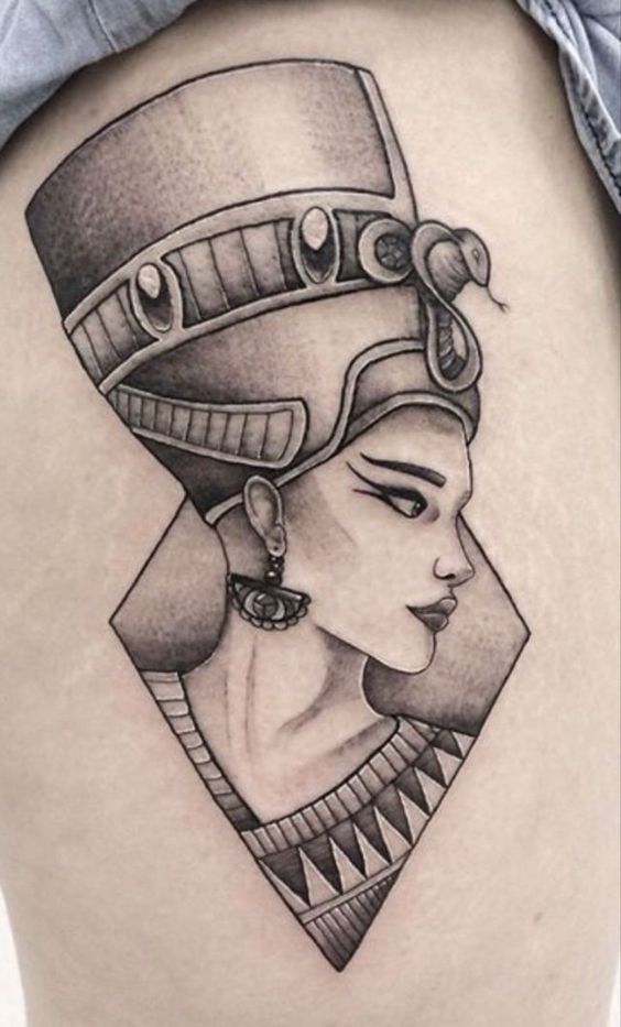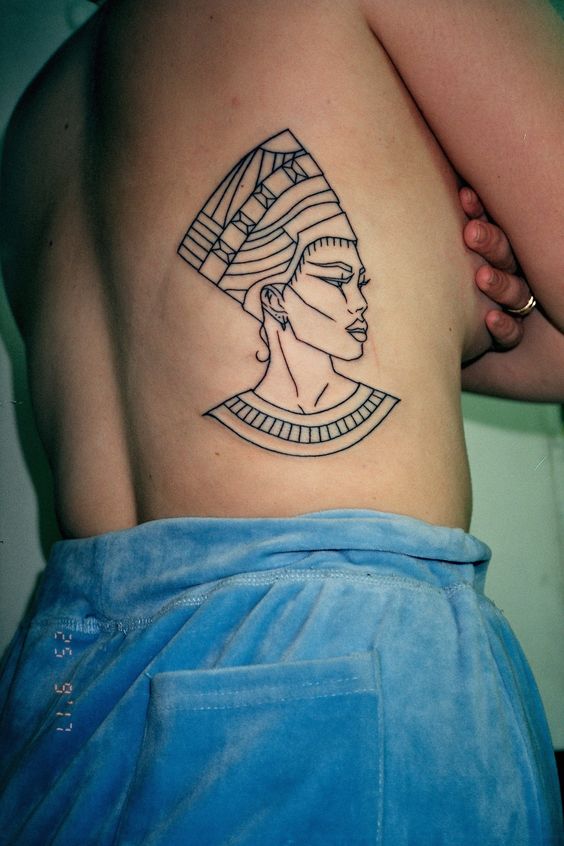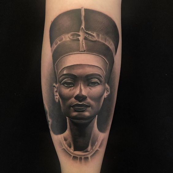 Also, the variety of styles is as rich as the history they represent. Moreover, from minimalist outlines to intricate portraits, the range is vast. Thus, Nefertiti tattoos can be personal and unique, yet universally recognized. Importantly, they are a testament to the enduring allure of Egypt’s queen.