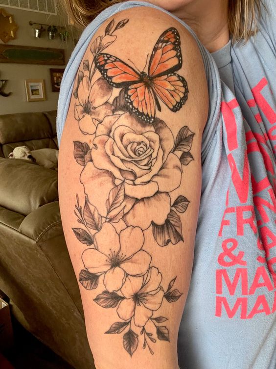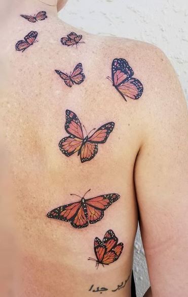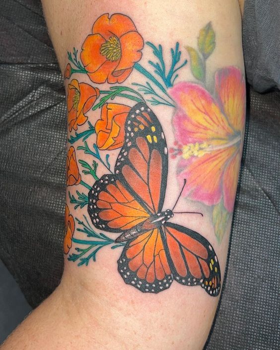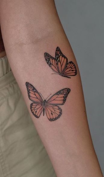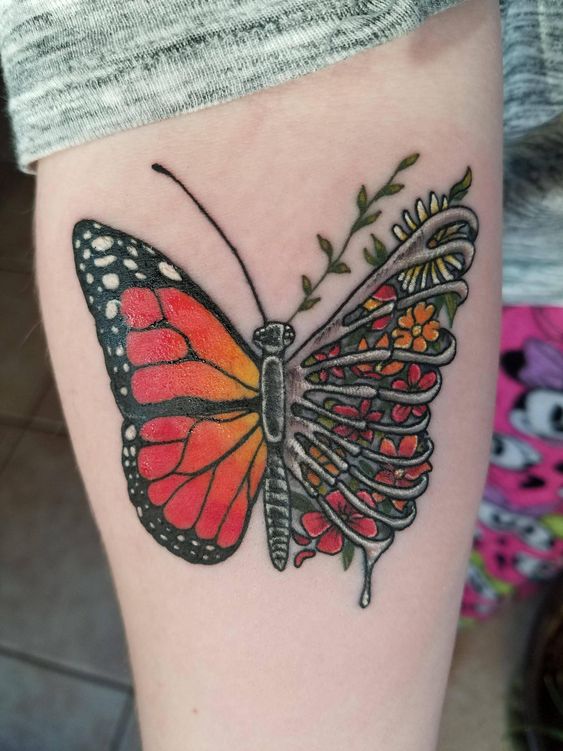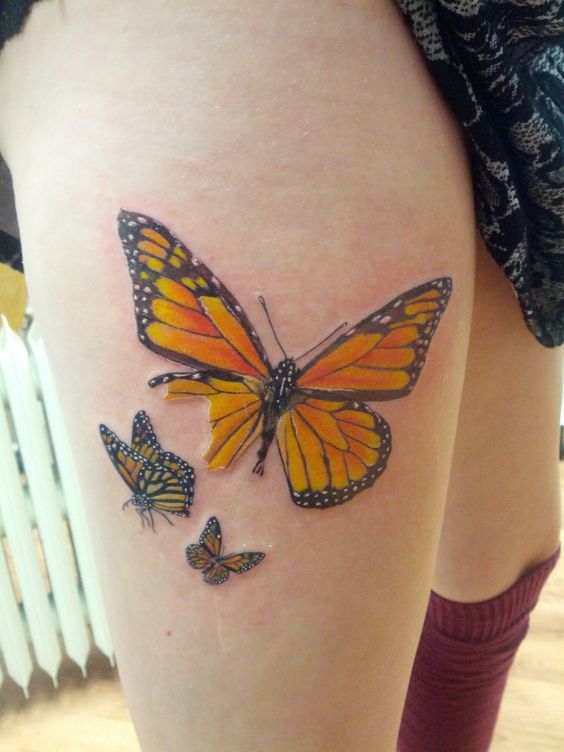 Additionally, a neon monarch tattoo brings a pop of color to the design. In the same vein, a black and grey monarch tattoo showcases artistic shading and depth. Furthermore, a lace-patterned monarch merges delicacy with the butterfly’s form. Also, a 3D monarch tattoo creates an illusion of the butterfly taking flight off the skin.