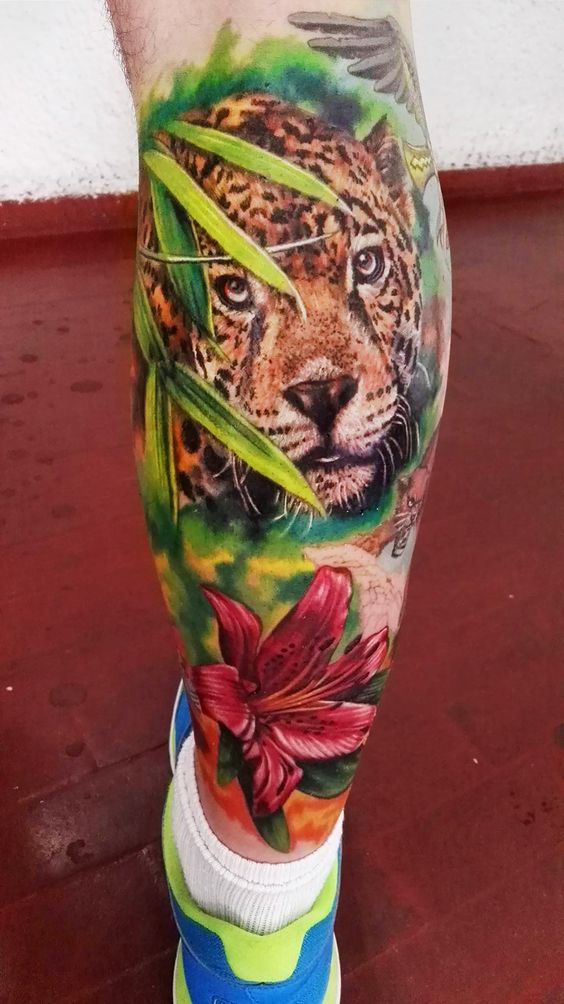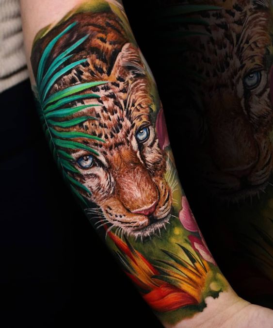Color is another consideration. While black and gray offer a classic look, adding color can make the tattoo pop. For instance, using shades of yellow and green can bring the jungle to life. Again, the choice is yours.