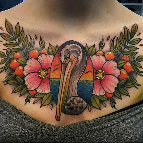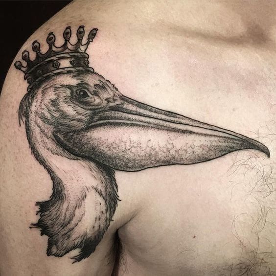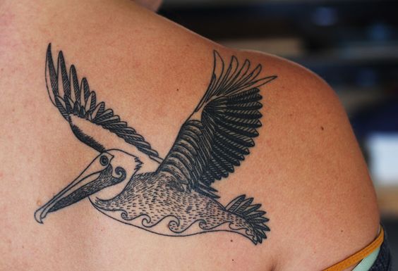 Also, a pelican holding a fish in its beak is a popular choice. This design can represent nourishment and the ability to provide. As a result, it’s perfect for people who take pride in their role as providers. Likewise, a pelican with spread wings is a symbol of protection and guardianship. This tattoo suits those who see themselves as protectors of their loved ones.