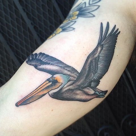 Lastly, a pelican in flight with a quote can be deeply personal. It allows you to combine imagery with words that hold special meaning. In conclusion, this tattoo suits those who wish to carry a personal mantra or inspiration.