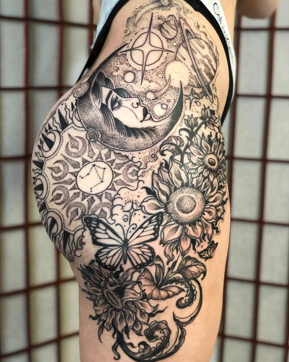Imagine a celestial map stretching along your side, stars and constellations guiding your path. It symbolizes guidance, hope, and a connection to the universe. Or consider an intricate tribal design, its lines and curves representing strength and heritage.