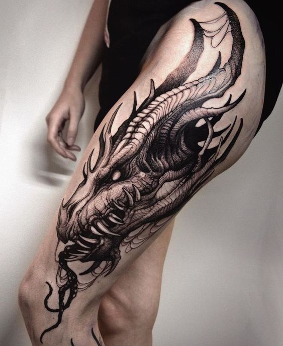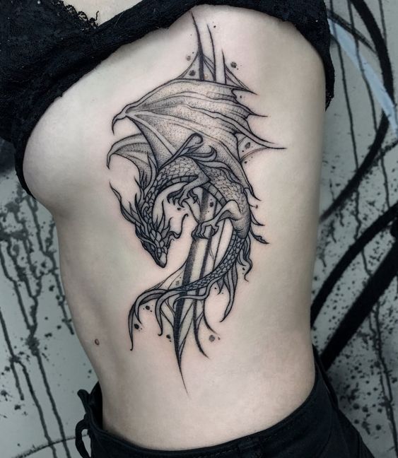 Some dragon tattoos incorporate floral elements. These designs blend fierceness with femininity beautifully. Black and grey dragons offer a classic, timeless look. They’re elegant and subtle, perfect for those who prefer a monochrome palette.