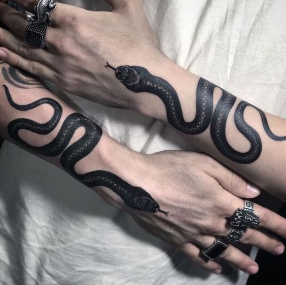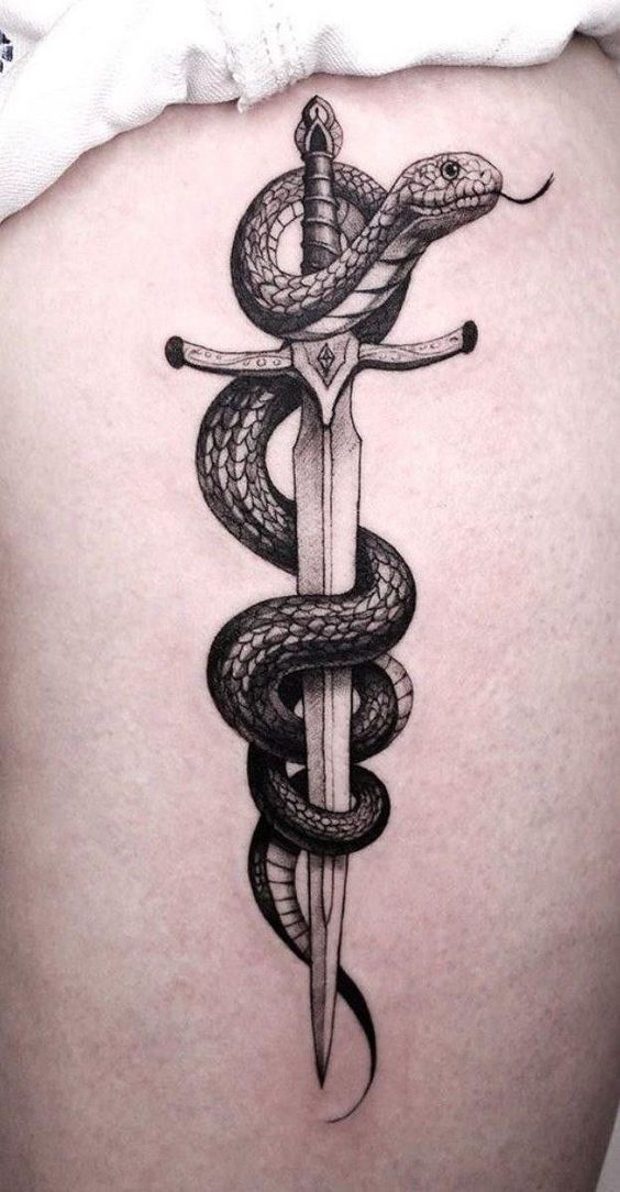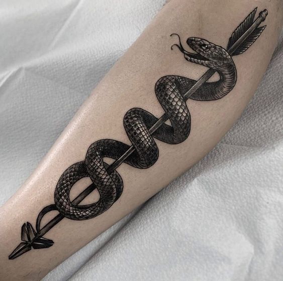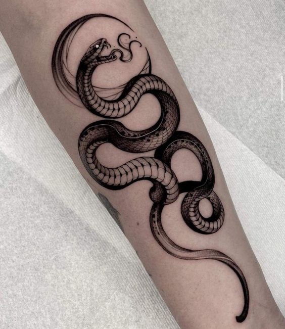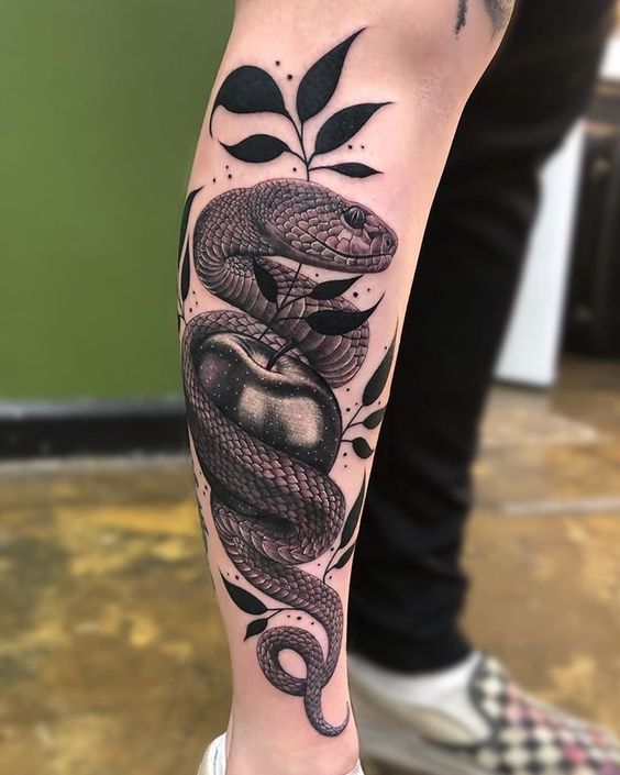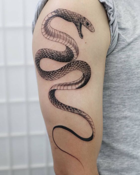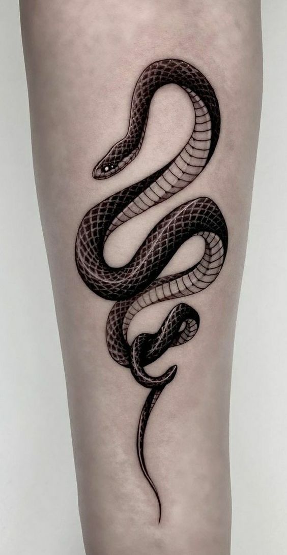 Consider a realistic black mamba for a dramatic effect. Such a design highlights the snake’s menacing beauty. An abstract version can convey deeper, symbolic meanings. The snake’s elongated body is perfect for arms or legs. It creates a striking visual flow along the limb.