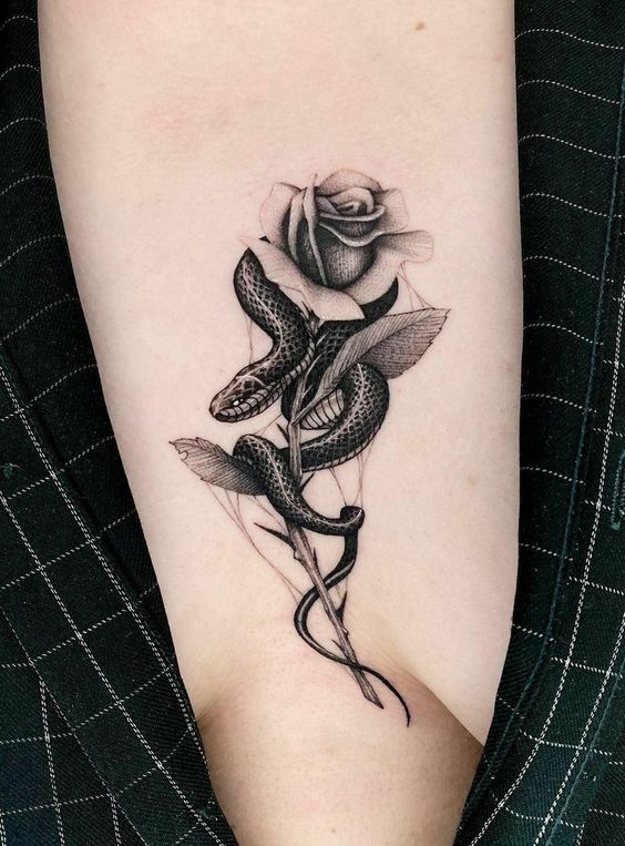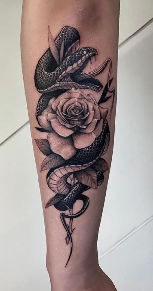 Color choices can also impact the tattoo’s look and feel. Black and grey bring out the snake’s elegant form. They offer a classic and timeless appeal. Adding hints of color can make certain features stand out. For instance, red eyes can add a menacing touch to the design.