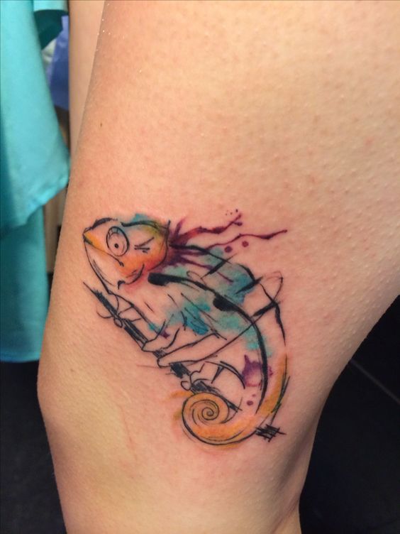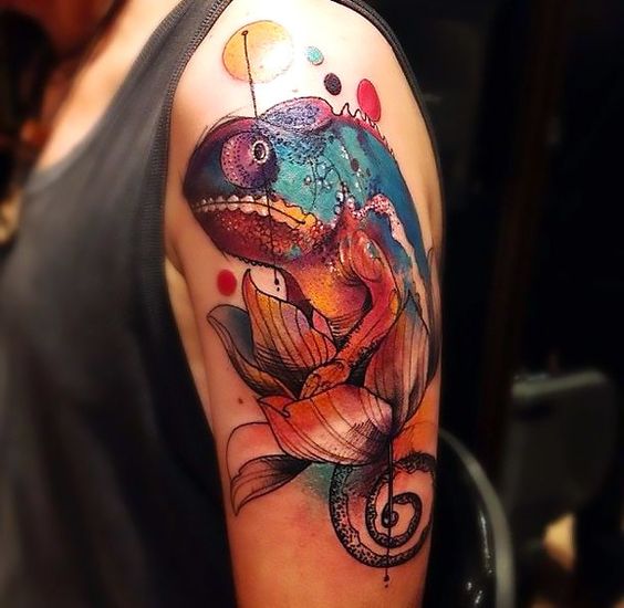 A highly sought-after design is the realistic chameleon. It showcases intricate details and vibrant colors, making it a visual feast. Additionally, for a more abstract look, geometric chameleon tattoos artfully blend modern art with the creature’s fascinating form. Similarly, watercolor chameleon tattoos are perfect for those who adore a splash of color and artistic expression.