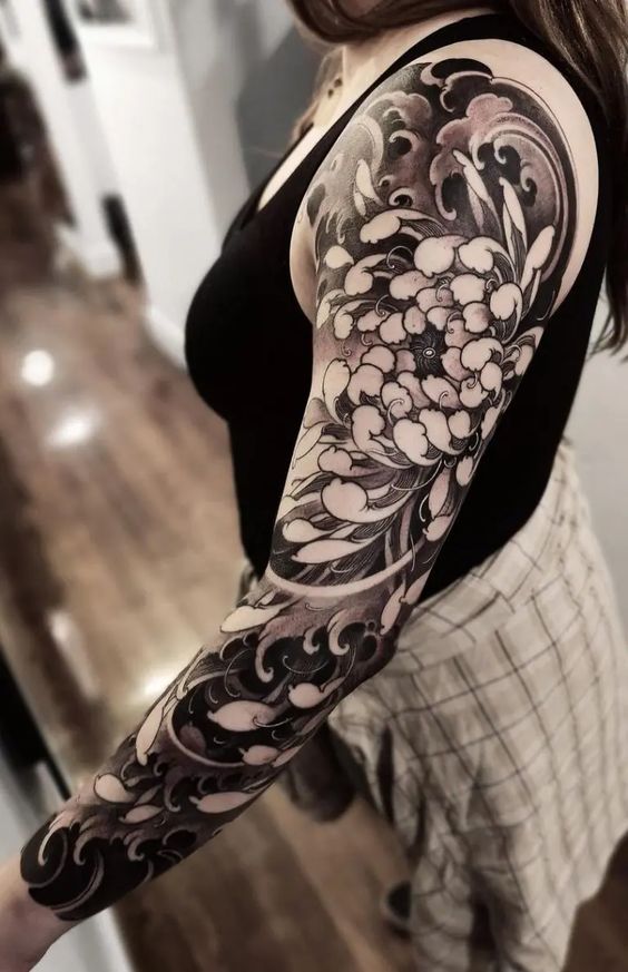 Incorporating other elements can add layers of meaning. A chrysanthemum with a butterfly symbolizes transformation and new beginnings. Pairing it with a skull, on the other hand, reflects on the balance between life and death. Adding water or waves alongside the chrysanthemum brings in the element of adaptability and strength.