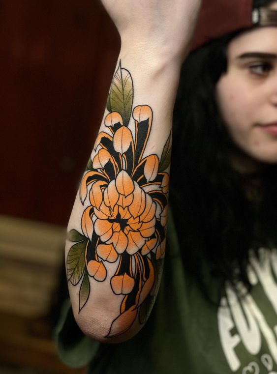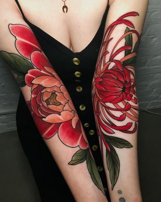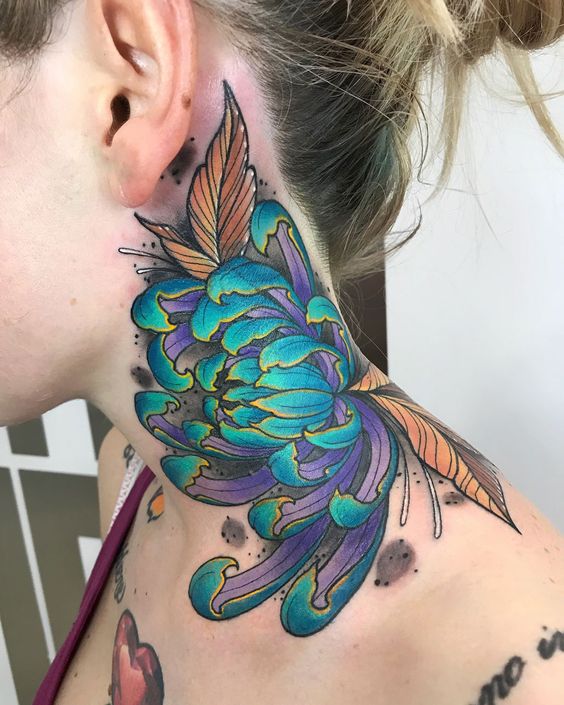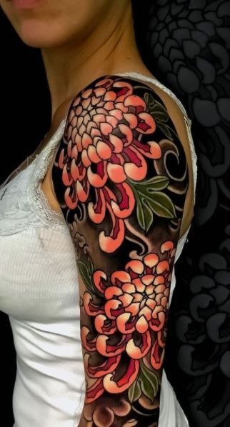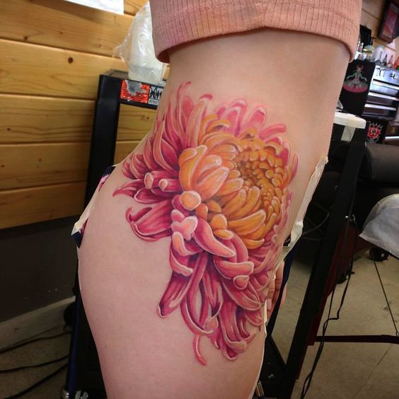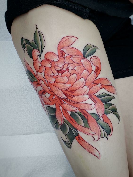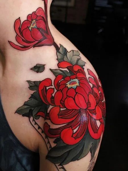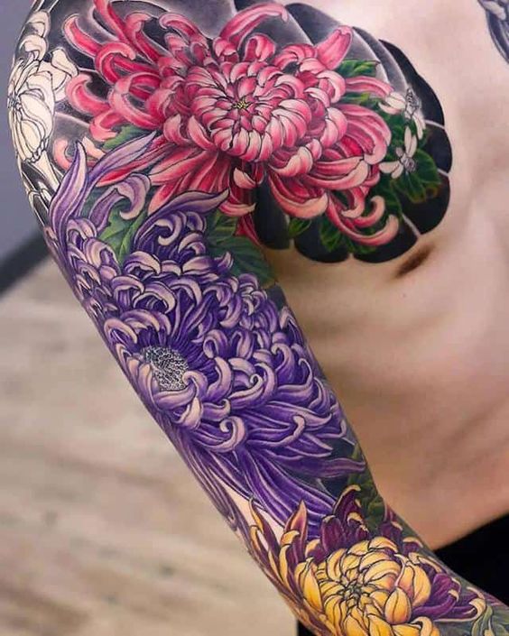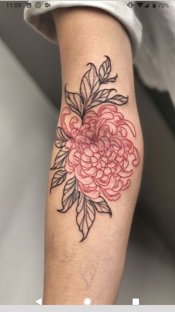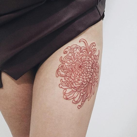 Color choice in a chrysanthemum tattoo greatly affects its symbolism. Red chrysanthemums are often associated with love and passion. White ones symbolize purity and truth, while yellow represents neglected love or sorrow. A pink chrysanthemum is a sign of happiness and a powerful love.