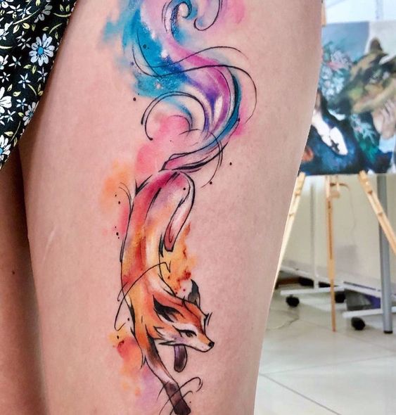 Tribal fox tattoos blend ancient symbolism with the creature’s form. They use bold lines and traditional patterns, creating a powerful visual statement. Meanwhile, watercolor fox tattoos offer a softer approach. They combine gentle hues for a dreamy and delicate appearance.