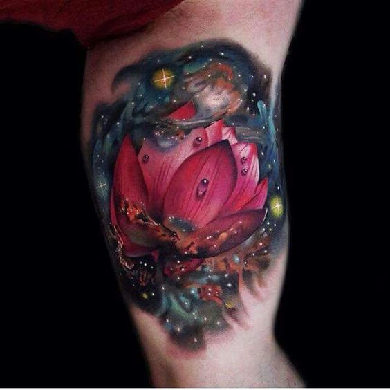 Also popular are lotus tattoos with celestial elements. Moons, stars, and planets orbiting the flower evoke a cosmic vibe. Finally, some tattoos even blend in text. Words or quotes surrounding the lotus add a layer of personal meaning.
