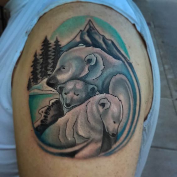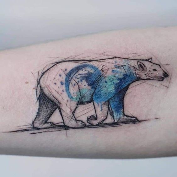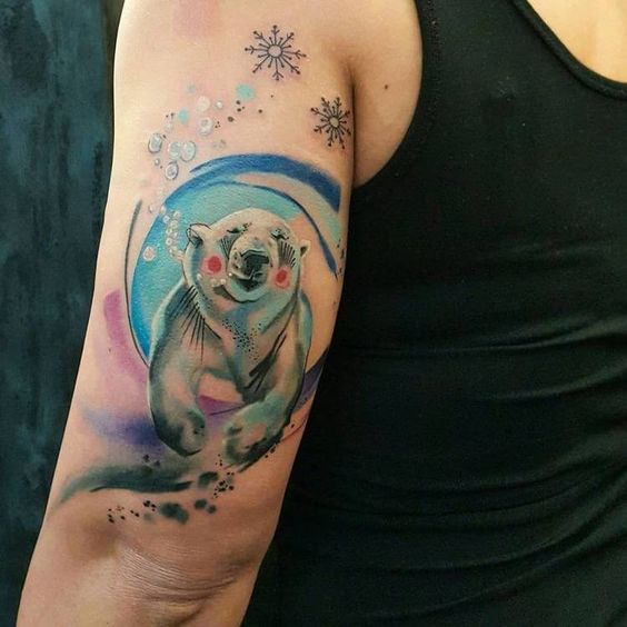 Furthermore, a watercolor tattoo brings a splash of color and creativity. This portrayal of the bear in vibrant hues significantly breaks away from traditional monochrome. Similarly, an abstract design transforms the bear into a piece of modern art. It uses bold lines and shapes to create a striking image. Likewise, a realistic polar bear tattoo captures every detail, from fur texture to expressive eyes.