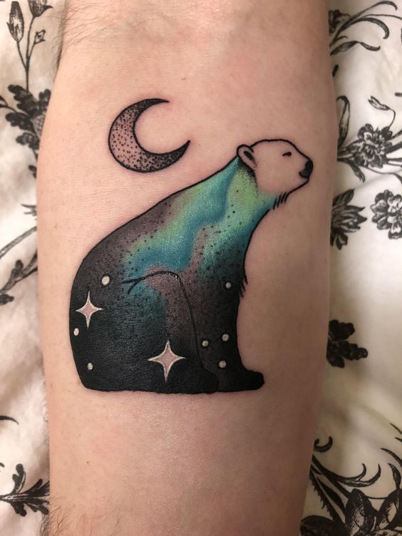 Moreover, a tribal-inspired design incorporates native patterns, effectively paying homage to traditional art forms. Additionally, a playful cartoon-style tattoo adds a touch of whimsy and fun, perfectly suitable for those who love light-hearted designs. Similarly, a celestial-themed tattoo combines the bear with stars and constellations, creating a mystical and dreamy visual.