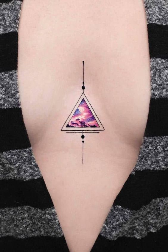 Watercolor triangle tattoos are gaining popularity, blending soft hues with sharp angles. These pieces stand out for their artistic flair and fluidity. Contrastingly, the classic black triangle tattoo remains timeless, appealing to those who love a traditional, understated look. A double triangle tattoo, intertwined, often symbolizes duality and connection, resonating with many on a personal level.