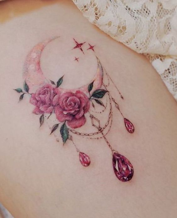 Picture a rose combined with other flowers on the thigh. Similarly, this symbolizes diversity and harmony. The larger space allows for more detailed, intricate artwork.