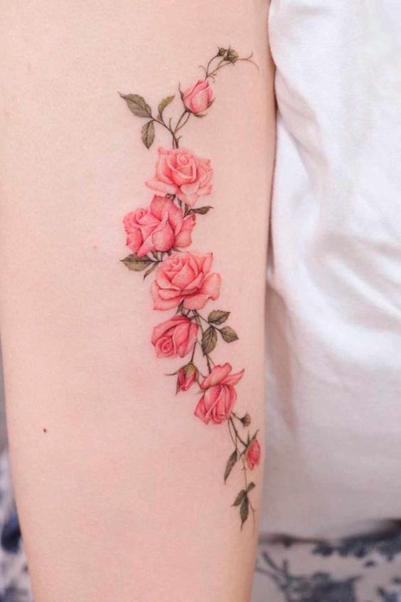 Ponder a watercolor rose on the forearm. Furthermore, it resembles a vibrant piece of art, expressive and lively. This style is perfect for creative individuals, displaying their artistic flair.