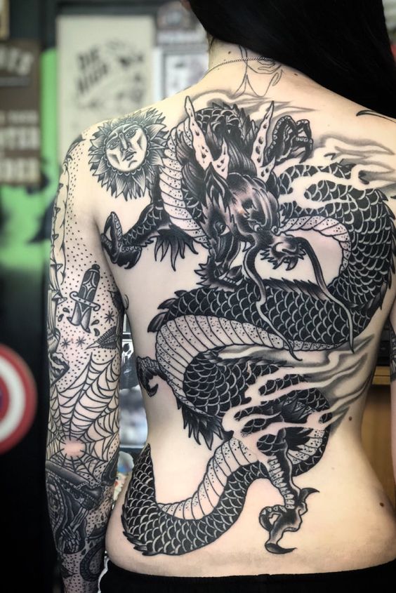 In terms of style and design, the possibilities are virtually endless. Some opt for traditional Chinese dragons, known for symbolizing wisdom and power. Alternatively, others prefer European dragons, renowned for their ferocity and strength. Additionally, Japanese dragon designs are popular too, representing balance and freedom. The dragon’s shape, moreover, allows for creative flow along the spine or across the shoulders, making it a design that can be both fierce and elegant.