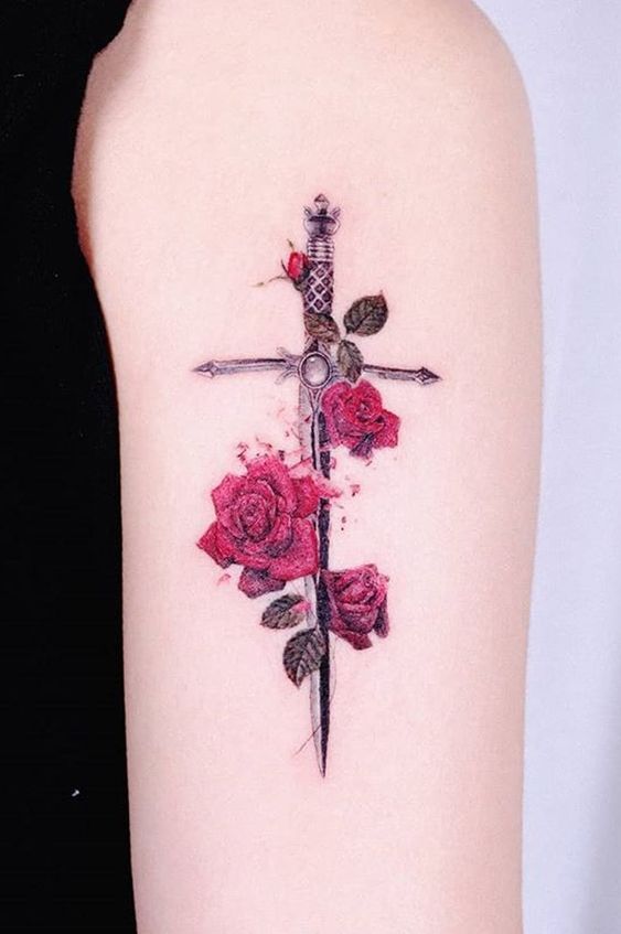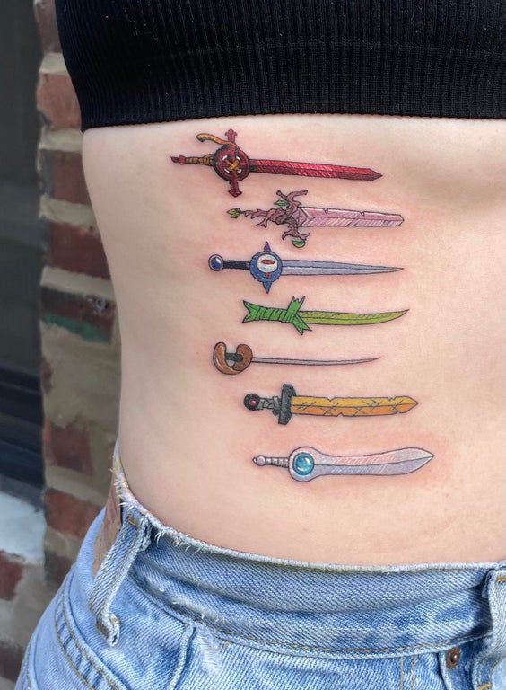 Color use in these tattoos varies greatly. Some prefer the stark contrast of black and grey, emphasizing the sword’s silhouette. Conversely, others opt for vibrant colors, bringing the tattoos to life with energy and emotion.