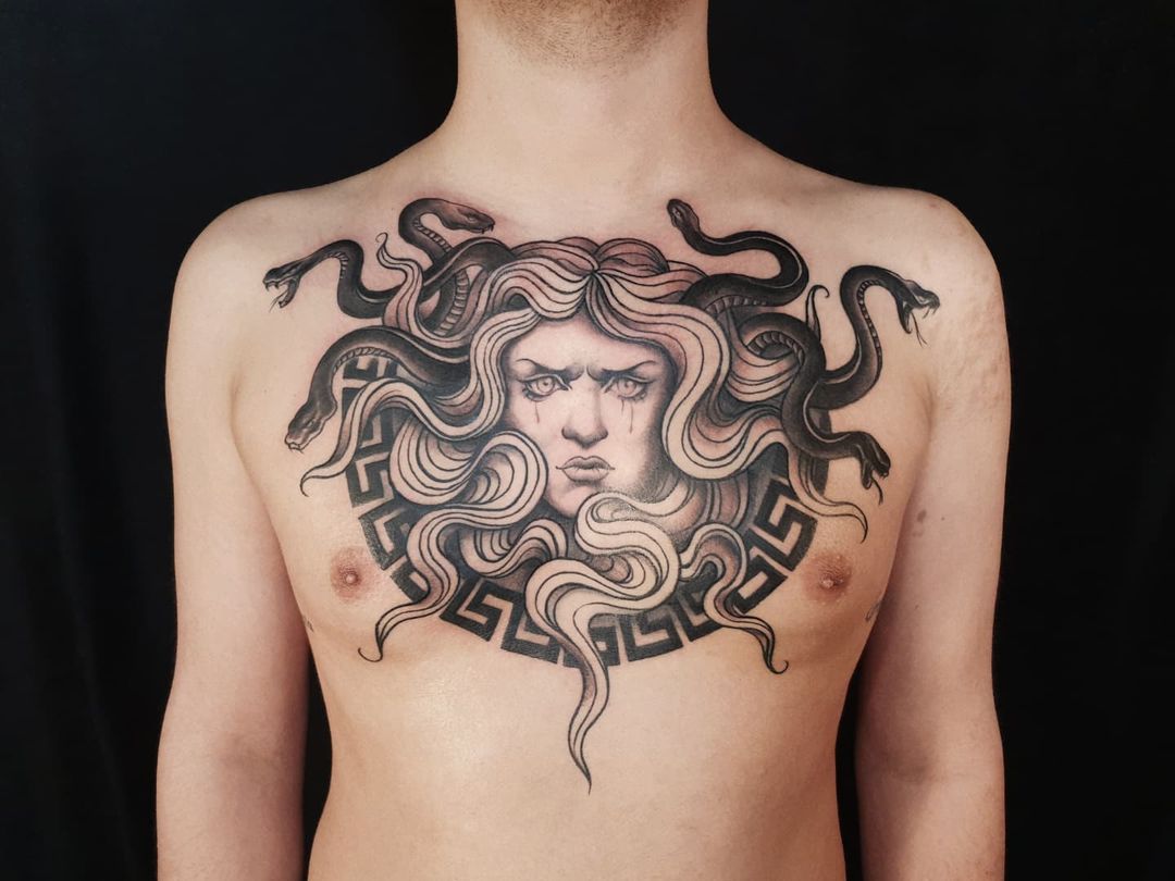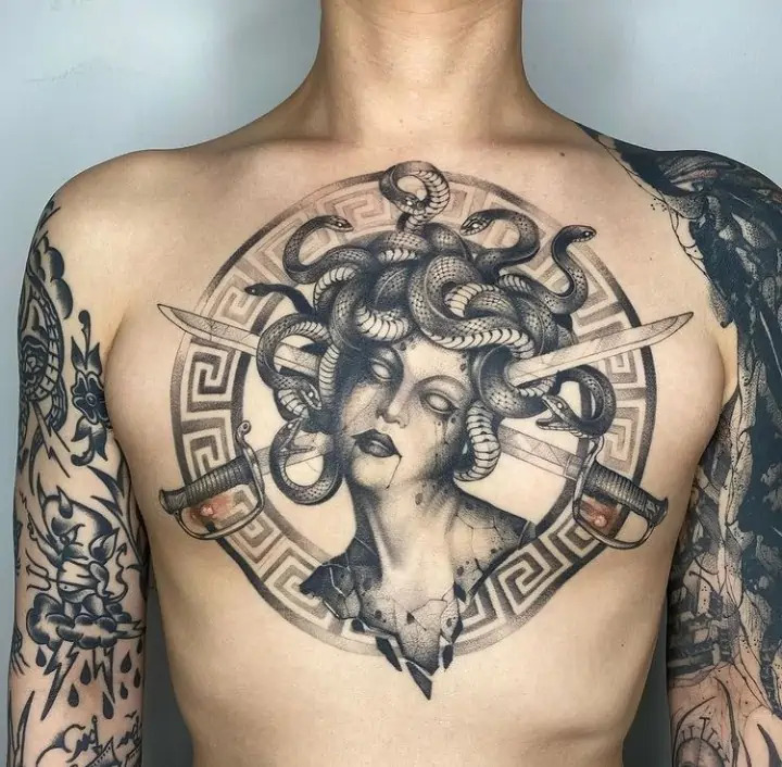 In conclusion, Medusa tattoos on chest offer a unique blend of aesthetic appeal and deep symbolism. They’re versatile, deeply meaningful, and highly customizable, making them a compelling choice for your next tattoo adventure.
