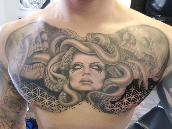 Seventhly, let’s consider longevity. The chest area is less prone to stretching and fading compared to other body parts. This means your Medusa tattoo on the chest is likely to remain vibrant for a longer period.